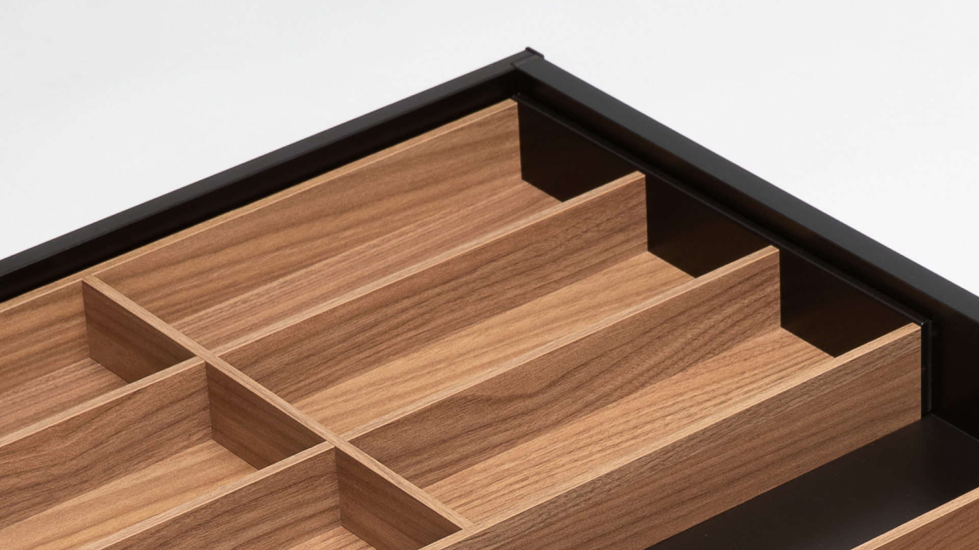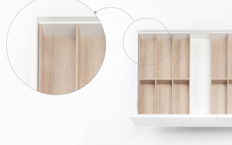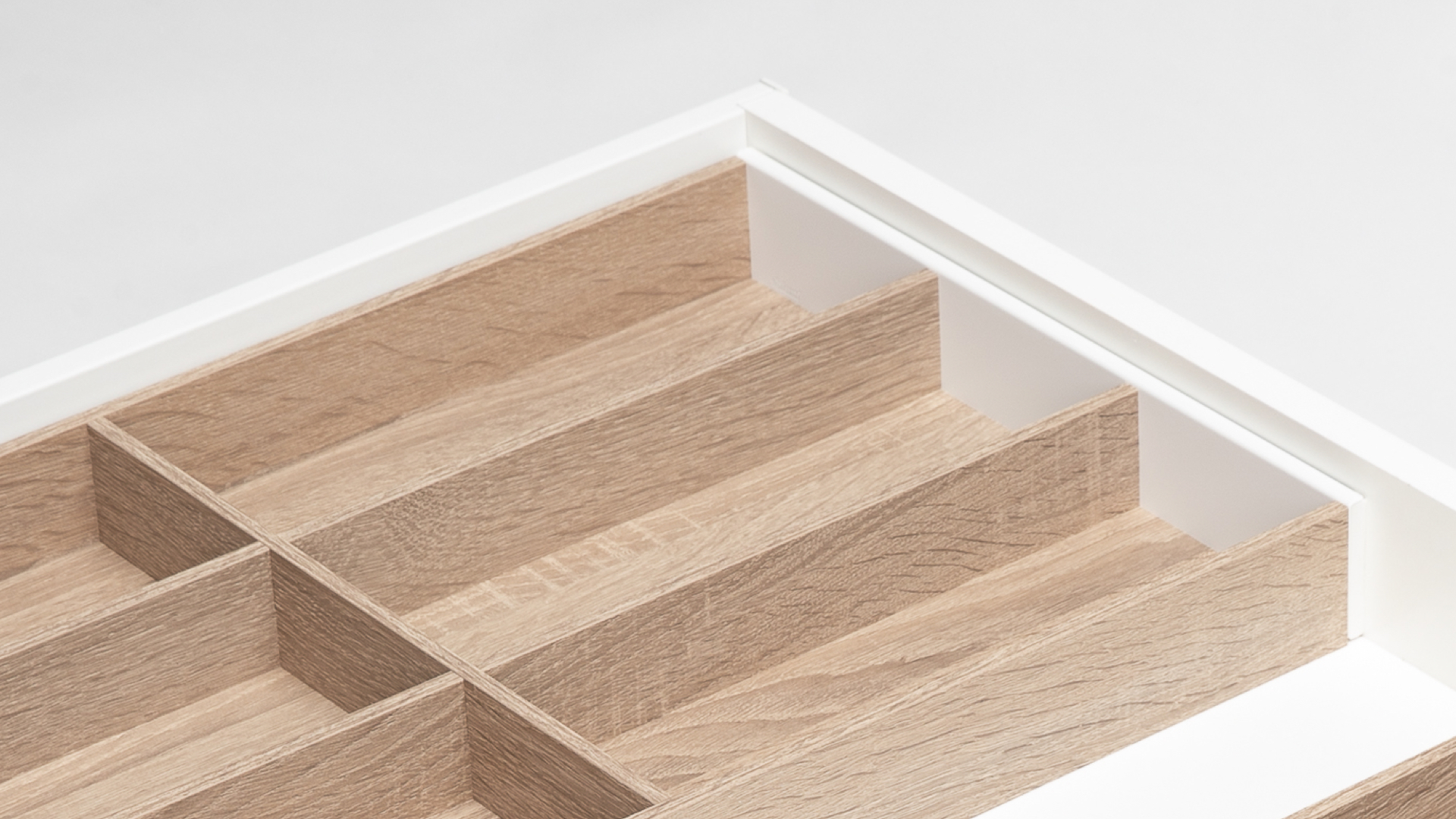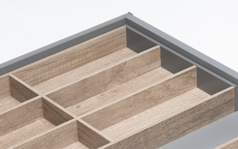 Onze bestekbakken en andere indelingen voor de keuken passen perfect in lades van het merk Blum, zowel qua afmetingen als qua kleuren en afwerking. Op die manier heb je steeds een perfect passende indeling die perfect past in de stijl van je keuken. Heb je lades van Blum? Scan dan simpelweg de code onderaan de lade. Met deze code kun je op onze website direct het passende bestek opbergsysteem vinden, zoals een bestekindeling!