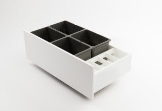 Voor het organiseren van jouw keuken en lades bieden we steeds een passende oplossing aan die aansluit bij het ontwerp en design van jouw keuken. Heb je een lade van Blum? Dan kan je de code scannen onderaan de lade waar je je lade-indelingen wil plaatsen. Via onze app krijg je een voorstel op maat waardoor je zeker bent dat de gekozen lade-indeling steeds perfect in je lade past. Zo kan je jouw keuken organiseren zoals jij dat wil en geef je ook de binnenkant van jouw keuken de uitstraling die zij verdient.
