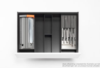 Om je favoriete gerechten klaar te maken heb je natuurlijk scherpe keukenmessen nodig. Vaak worden deze opgeborgen in een messenblok op het aanrecht of aan een magnetische strip aan de muur. Toch kan je deze best uit het zicht van kleine kinderen bewaren. De oplossing hiervoor? Een messenhouder in je lade. Je messen opbergen in een lade bij een andere keukenlade organiser zorgt ervoor dat deze uit het zicht van je (klein)kinderen blijven. Zo wordt je keuken in een klap een stuk veiliger.